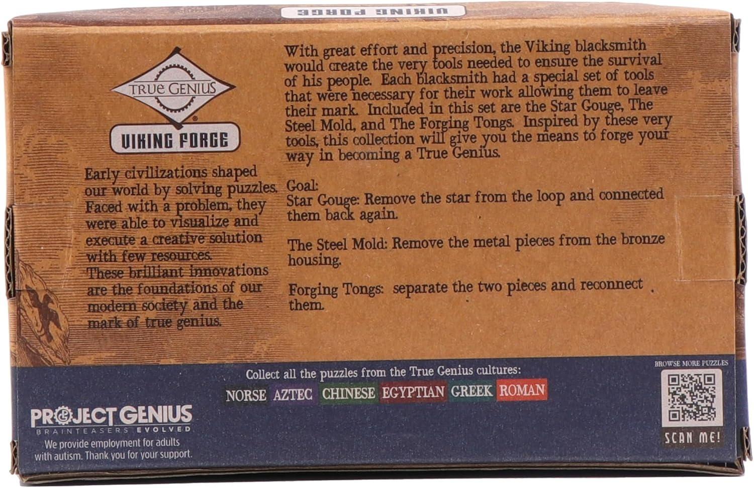Embark on a journey into Norse craftsmanship with the “Project Genius – Viking Forge.” This set, suitable for ages 8 and above, includes three distinct puzzles: the Star Gouge, The Steel Mold, and the Forging Tongs. Each puzzle offers a unique challenge, with difficulty levels ranging from 3 to 5 out of 5.The Star Gouge involves removing and reconnecting a star from a loop, The Steel Mold tasks you with extracting metal pieces from a bronze housing, and the Forging Tongs require separating and rejoining two pieces. These puzzles not only provide mental stimulation but also give a glimpse into the art of Viking forging.* Thematic Puzzles: Inspired by Viking-era tools and craftsmanship.* Varied Challenges: Each puzzle presents a unique and engaging problem-solving experience.* Compact and Collectible: Easily stored and displayed in a compact box.*Features:** Age: 8+* Difficulty Level: 3–5/5* Product Dimensions: 17.5 × 10.5 cm
