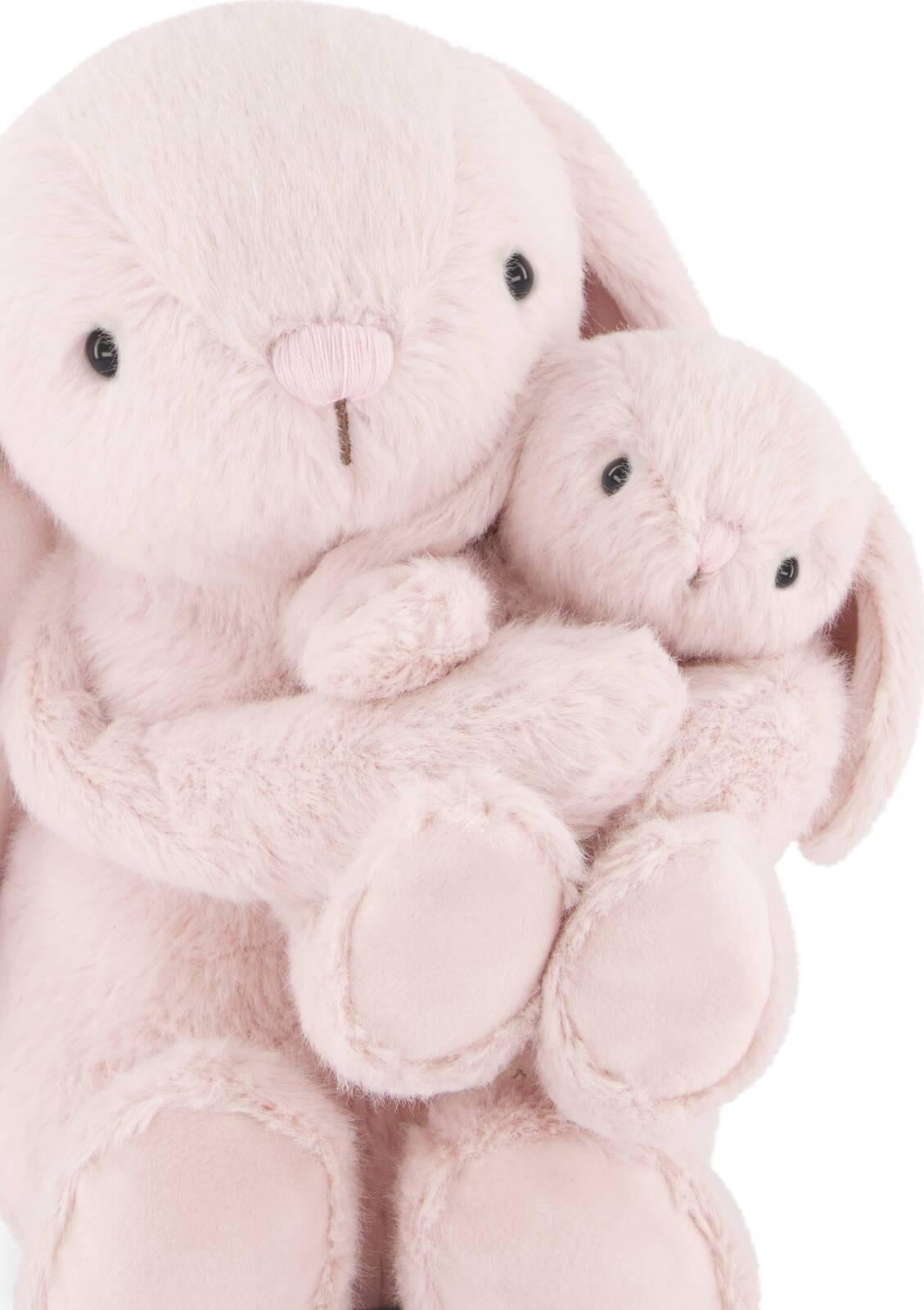 *Frankie the Hugging Bunny loves gardening in the sunshine, playing peekaboo, and most of all, cuddling Baby Bunny close. She dislikes being away from family, always keeping her little one near!*The perfect gift for your little ones to snuggle up with and love. Frankie is a 30cm mama bunny and comes together with her cutie 15cm baby. Our mama bunny's hands feature Velcro fastening so they can be separated to let baby free for play time, or kept together to hold their little darling close.Crafted from the softest materials, our Snuggle Bunnies are the perfect companions for your child. Their unique design and colors are sure to capture your child's imagination and spark their curiosity. Plus, their soft and cuddly texture is sure to provide your child with hours of comfort and joy.Our Snuggle Bunnies make the perfect gift for birthdays, holidays, or just because. Whether your child is a bunny lover or looking for a new snuggly companion, these toys are sure to be a hit.