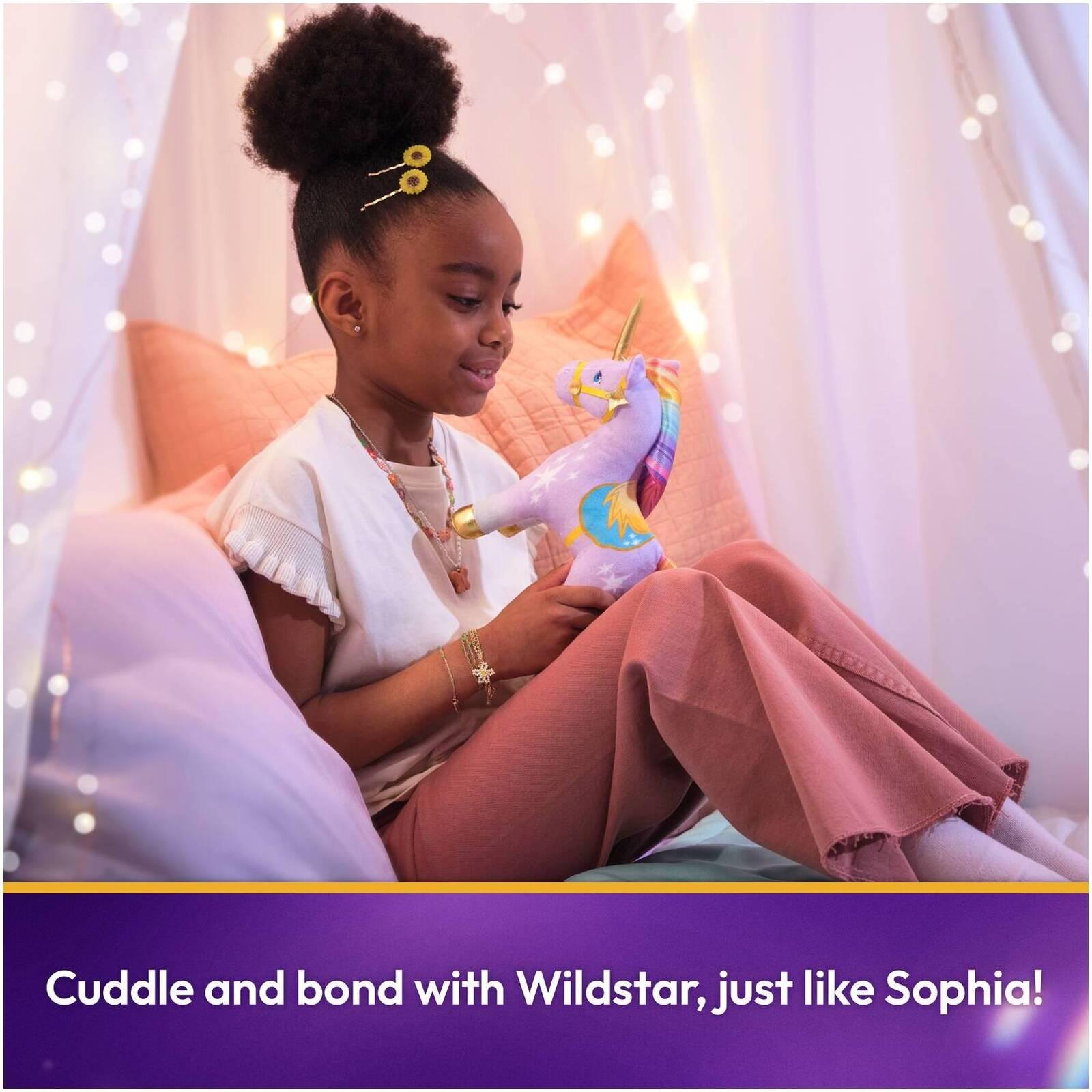 *Enter the world of Unicorn Academy, where friendship reins!*Bring the magic to playtime and celebrate the bond between rider and unicorn with these adorable 7-inch standing plush unicorns, which capture the magic of River, Leaf, and Wildstar.Each features authentic character details from the NETFLIX animated show and best-selling series of children’s books, including each unicorn’s distinct magic markings and colors. These true-to-show details make playtime even more exciting, helping inspire creativity and spark endless imaginative storytelling! Appropriate for ages 1 and up. Ships in a protective poly bag. Spot-clean only; do not use harsh chemical cleaners.*Features:** SAFETY & CARE: This unicorn stuffed animal features authentic printed and embroidered character details from the show, including its saddle and bridle. Safe for ages 1 & up; ships in a poly bag. Spot clean only.* COLLECT THEM ALL: Bring home the magic of Unicorn Academy with Wildstar, Leaf, and River! Based on the popular NETFLIX show and best-selling kids books, this collection of plush unicorn toys will spark endless pretend play adventures!* GIFT UNICORN ACADEMY: Explore the collection for magical unicorn toys for girls age 4–6 and up, enchanting unicorn gifts, birthday gifts, and decor for unicorn fans! Our kids toys make exciting gifts for any occasion and encourage imaginative play.* BRING THE ADVENTURE HOME: Impress fans of all ages with dolls, small dolls, stuffed animals, and more exciting Unicorn Academy toys! From soft plushies to fashion dolls, it’s easy to live out the adventures with your favorite characters anywhere.