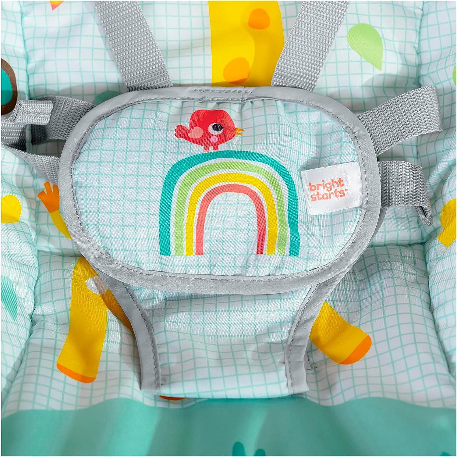 *_Bright Starts: Wild Vibes Infant to Toddler Rocker_*It’s a soothing safari for your wild child with the Wild Vibes 2-in-1 rocker and stationary seat from Bright Starts. This powerhouse multi-use seat grows with baby and is great for infants and toddlers alike!*Features:** Adults can soothe baby in the rocker mode, while the toy bar entertains from above with the colorful rattle and monkey bead chaser toy.* The vibrating seat helps keep baby calm while you have a hands-free moment with baby in view. One-button vibration functionality is built into the seat, so you can easily switch vibrations on or off to baby’s preference.* To recline, use the buttons below the toy bar on each side of the seat to adjust forward and back. Use the front kickstand to seamlessly switch from rocker to stationary seat.* When you're on the move, simply lift on each side when baby is not in the bouncer to move from room to room.* This do-it-all chair grows with baby up to 40 lbs, so you’ll get years of use from newborn to toddler rocking chair.* Keep the good times rocking with a removable seat pad that’s machine washable for any baby spit up or big kid messes.* Great gift idea for baby shower or baby arrival!
