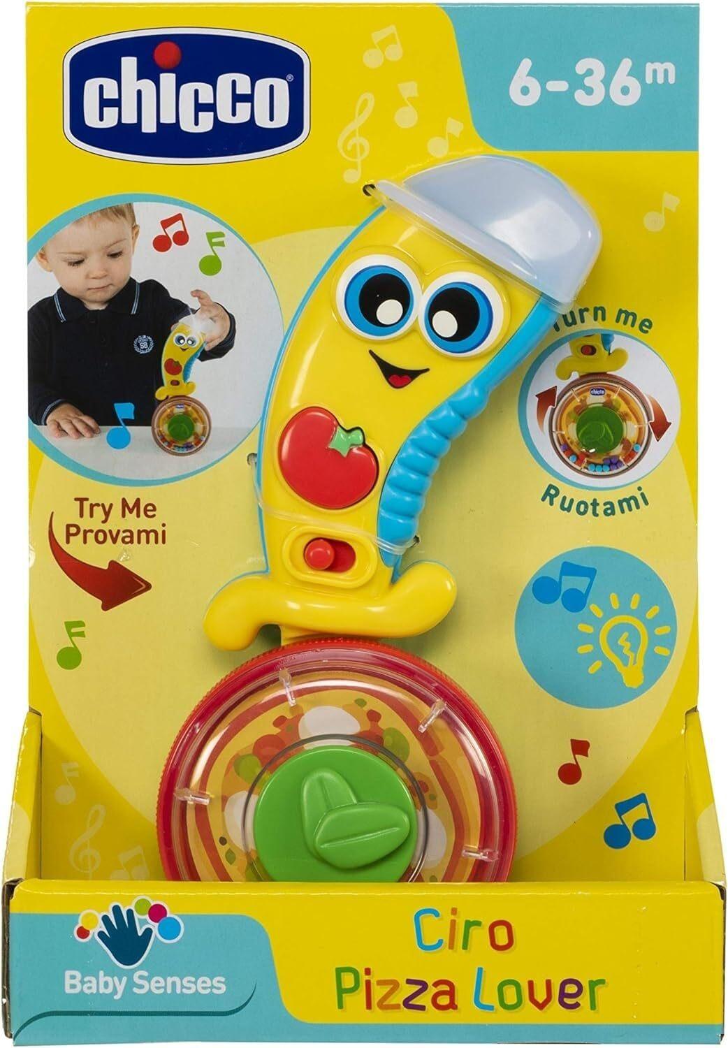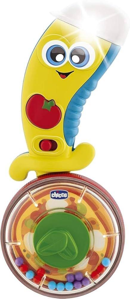 An electronic toy with lights and melodies that allows your little one to step into the shoes of a real chef.*Features:** Cut the pizza and spin the wheel to activate the tunes and light up the hat* Press the tomato button to activate light and melodies* Plenty of manual activities to help develop and refine baby’s early motor skills* ON/OFF system* Batteries: 3 x LR 44 1,5 V (included)