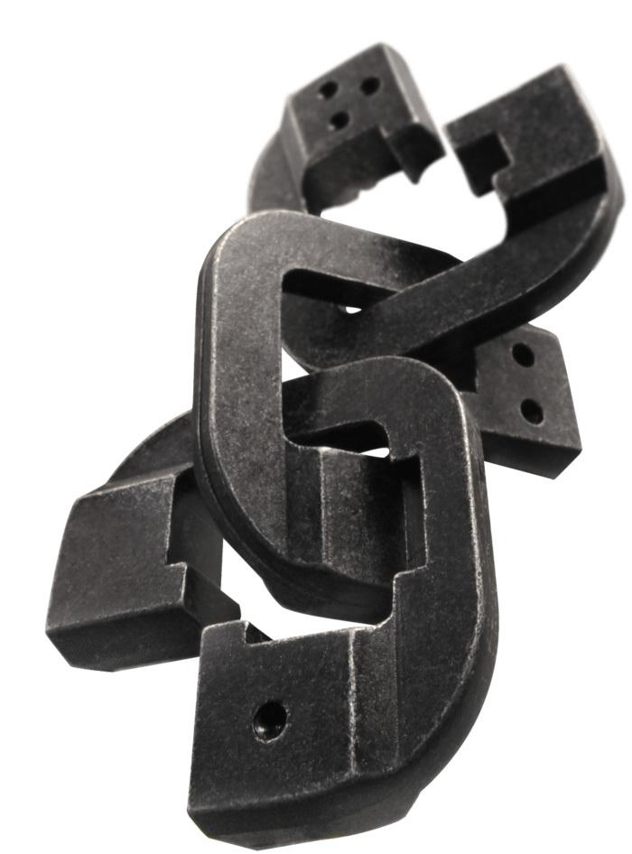 Hanayama Huzzle puzzles, provides puzzles for adults which are solved using a blend of inspiration and logic. The challenge is to take the puzzle apart and put it back together. Simple, yet so deep. You will need your hands and your brain on board to solve the huzzle puzzles!Happy Puzzling!There’s a whole of wisdom wrapped up in this Oskar masterpiece. The three pieces can be separated and then joined again in their original form. What’s special about this puzzle is that it can be solved three different ways, depending on which of the three pieces is chosen as the middle piece. Solving this puzzle requires an especially subtle kind of working of the pieces, the kind that often leaves the victim struggling in frustration. Keeping in mind its chainlike behavior and using your feeling to your advantage is the best way to attack this.* Difficulty level 6* Ages 8+