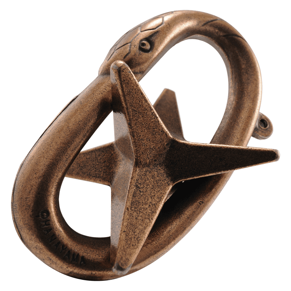 Hanayama Huzzle puzzles, provides puzzles for adults which are solved using a blend of inspiration and logic. The challenge is to take the puzzle apart and put it back together. Simple, yet so deep. You will need your hands and your brain on board to solve the huzzle puzzles!Happy Puzzling!At the end of the 19th century, Britain experienced a huge puzzle craze. I managed to pick up a number of the puzzles famous during that period in flea markets, despite their Rarity. Based on these original puzzles from Britain's famous puzzle period, this is one that we have successfully revived in its new form. The key part of this puzzle is the “Star,” which needs to be freed from the snake binding it. If only the Star wasn’t so stubborn in its return to the snake.* Difficulty level 3* Ages 8+