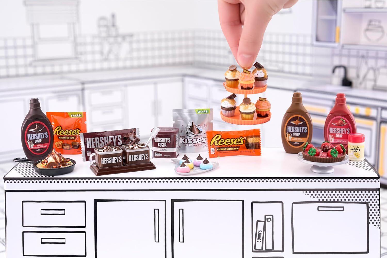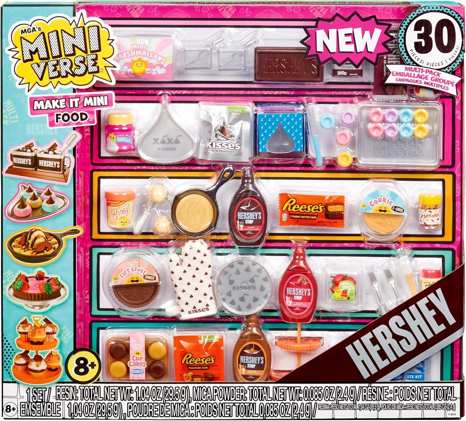 *All new DIY Make It Mini Food Hershey themed minis to make, set, remix, and display!*Follow the “recipe” card on the back of the collectors guides to make your Hershey themed mini. Each pack comes with 30 pieces and 5 “recipes” that come from the official Hershey website. Once you've finished creating your mini, set your replica in any UV light until the resin has hardened. Once it's set, you've got a mini collectible ready for display! Still feeling crafty? Mix and match your minis to create your own Miniverse Remixes.Your finished replica is not the only item worth collecting. From mini replica versions of various Hershey's Syrup bottles, to mini–Reese’s Peanut butter cups, to Hershey's Cocoa Powder, there are so many unique Make It Mini Food Hershey replica ingredients, packages, and kitchen accessories to collect and make your very own mini collectibles. If it’s not MGA's Miniverse, then it’s not MGA's Miniverse!*Features:** Miniverse is the only mini collectible that you can PREP, SET & DISPLAY.* All new DIY Make It Mini Food Hershey-themed minis to make, set, remix, and display!* Follow the “recipe” card on the back to prep your mini.* Once you've finished creating your mini, set your replica in any UV light* A UV light will harden the resin to complete your replica.* Once it's set, you've got a collectible ready for display!* Your finished replica is not the only item worth collecting.* There are so many unique Make It Mini Food™ Hershey replica ingredients, packages, and kitchen accessories to collect and make your very own mini collectibles.*Suitable for ages 8 & up**Please Note:*_Ingredients are NOT edible. Please do not ingest_ _UV lamps are not included in this product. Sold separately_ _Adult supervision is recommended_