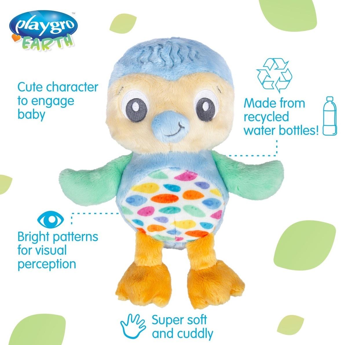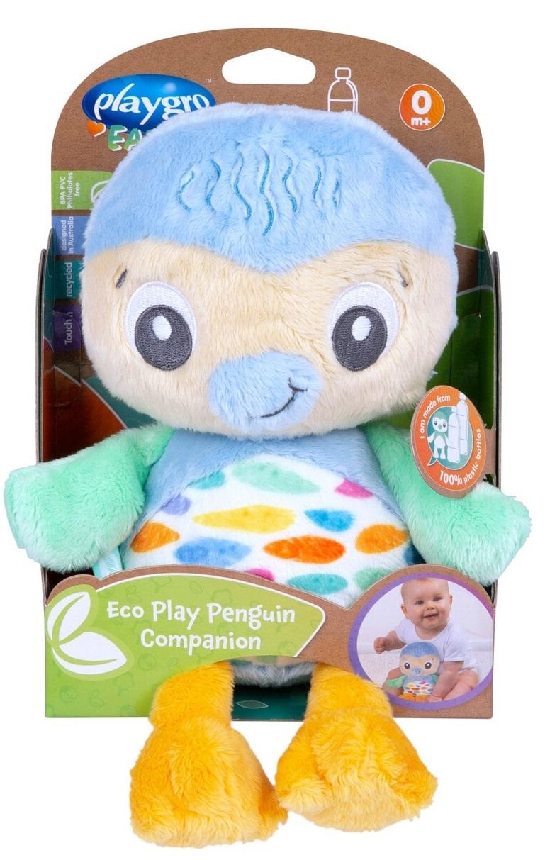 *_Playgro: Eco Play Companion Penguin_*Made from recycled water bottles! Cute ocean character to engage baby. Extra soft and super cuddly for added security during bed-time. Bright patterns for visual perception. From their first smile to their curious crawl, your baby's journey is a precious one.Why not make it sustainable too? With Playgro's eco-friendly toys, you're choosing toys that nurture their growth while treading lightly on our planet. Because every tiny step towards sustainability matters.*Features:** Made from 5 recycled water bottles!* Cute ocean character to engage baby* Extra soft and super cuddly for added security during bed time* Bright patters for visual perception