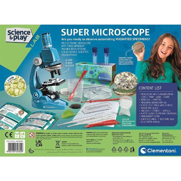 *Science & Play: Lab Microscope 1200x*See the world like never before with this Super Microscope from Clementoni. This microscope is great for inspiring creativity in young learners and has a durable plastic design.*Features:** It's great for having fun while learning about the world around you.* It helps to boost creativity.* It has a durable plastic design.* This microscope comes in a stylish blue colourway.*Suitable for Ages 8+*