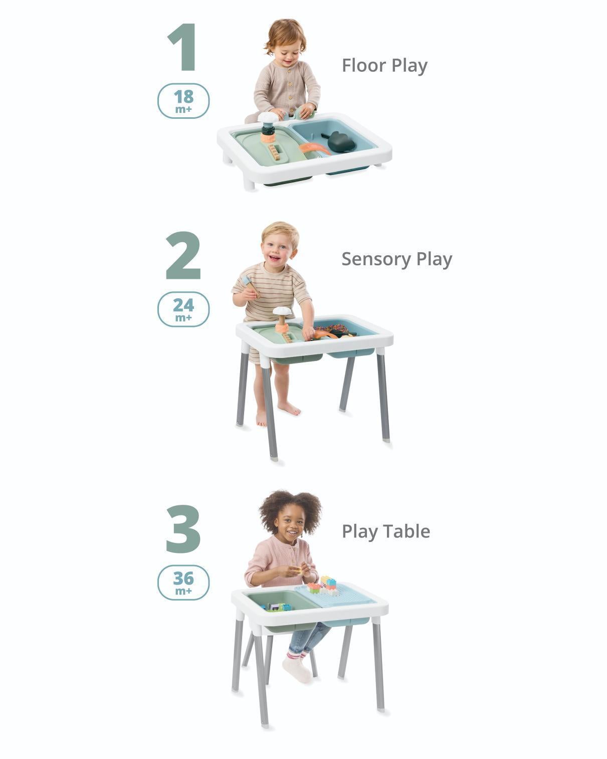 *_Skip Hop: Discoverosity 3-in-1 Sensory Table_*Developed in collaboration with a sensory play expert, our 24-piece sensory table for toddlers set offers limitless ways to explore, learn, create and play. Designed to grow with your child, early sensory exploration begins with floor play and the included tools (wooden tongs & rollers, animal scoops, shovel rake & more)—they can be used in so many ways! As your little one grows, add the legs to the sensory table and experiment with fillers such as sand, dry pasta, water, sculpting clay and more found objects. Dig, sort, sculpt, scoop, pour & more—stretch your imagination and create a hands-on landscape for sensory play for toddlers. Need inspiration? The included activity guide has lots of sensory play ideas to try using our sensory bin table and your own sensory fillers for years of learning & fun.*Features:** Age 18m+* Developed in collaboration with a sensory play expert* 3 modes of sensory play: Floor Play (18m+), Table Play (24m+) & Play Table (36m+)* 30+ developmental activities* Encourages sensory development, hand-eye coordination, cause & effect, motor skills & pretend play* Table with removable legs, 2 bins, 2 convertible lids, play track* 13 nature-inspired sensory tools* 8-page activity guide* Fillers not included* Coordinates with Skip Hop Discoverosity Collection* Size (inches): 22.9 × 18 × 22.5; (cm): 58.1 × 45.7 × 57.2